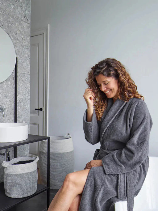 En blød badekåbe er dejlig at svøbe sig i om morgenen, efter et langt bad eller bare når du skal være afslappet. Vores morgenkåber fra Aquanova, er altid lavet i det bedste og lækreste materiale, så din krop altid vil være omgivet af lækkert og blødt bomuld. Vores badekåber findes både til mænd og damer og i mange farver. Vi mener at morgenkåben er en dejlig luksus efter et langt bad og skal være god til at tørre kroppen hurtigt. Oplev en lang række af badekåber i høj kvalitet og i flotte design. Vores morgenkåber findes i en lang række størrelser lige fra Small, Medium, Large og Xlarge. Du kan derfor nemt finde morgenkåber til hele familen. Alle vores morgenkåber har en størrelsesguide, så du nemt kan finde din størrelse.