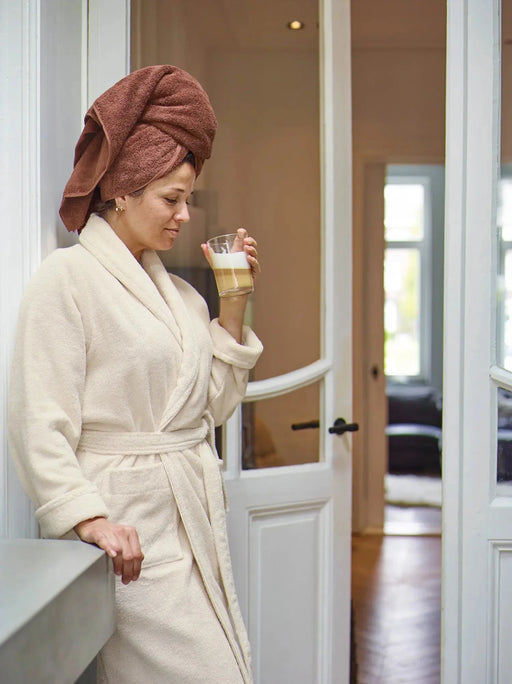 Vi anbefaler altid, at du lægger din badekåbe i blød i koldt vand og derefter vasker den, inden du for alvor tager morgenkåben i brug. Det forbedrer både badekåbens sugeevne og vasker eventuel overskudsfarve væk. Alle vores morgenkåber kan vaskes ved mellem 40 og 60 grader, og bør vaskes separat de første par gange for at sikre at overskudsfarve ikke sætter sig. De fleste af vores badekåber kan godt tørretumbles, men det skal foregå ved lav temperatur (max 60 grader).